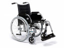Регулируемые по высоте подножки, легко снимаются или отводятся в сторону для удобства пересаживания пользователя. Небольшие колесики-бамперы, установленные на основаниях подножек, защищают вашу мебель и стены во время движения коляски. Модель оснащена ручным стояночным тормозом. Сиденье и спинка могут быть выполнены из прочной ткани или кожзаменителя.