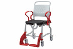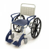 Кресло-коляска имеет 4 маленьких и 2 больших задних съемных колеса. Большие колёса позволяют пользователю передвигаться на стуле без посторонней помощи. Тормоза на каждом колесе позволяют зафиксировать кресло на месте, если это необходимо. Подножки кресла-туалета можно снять.